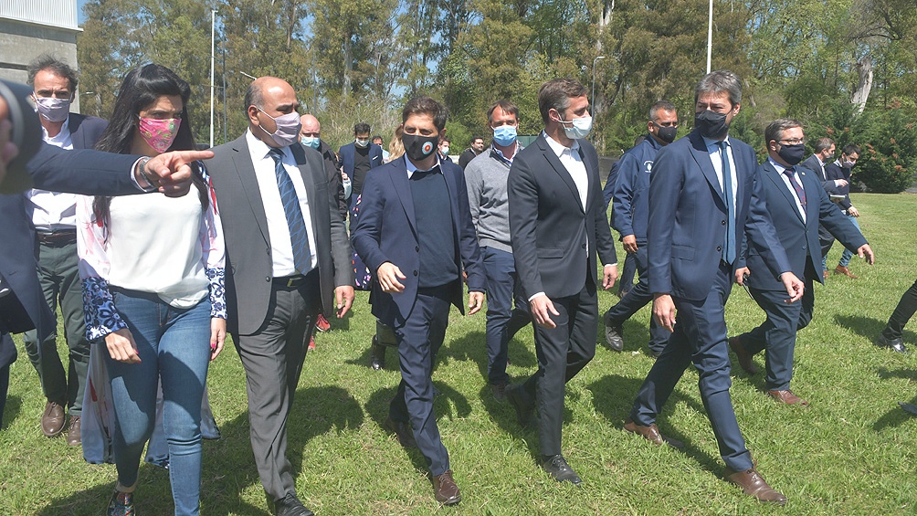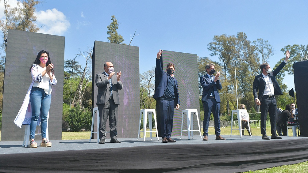 En su discurso, Manzur además elogió el trabajo realizado durante la pandemia por quienes hoy lo acompañaron en el escenario: la titular del PAMI, Luana Volnovich; el ministro de Turismo, Matías Lammens; y el mandatario bonaerense, Axel Kicillof, a quien calificó como “un señor gobernador, con mayúsculas”.