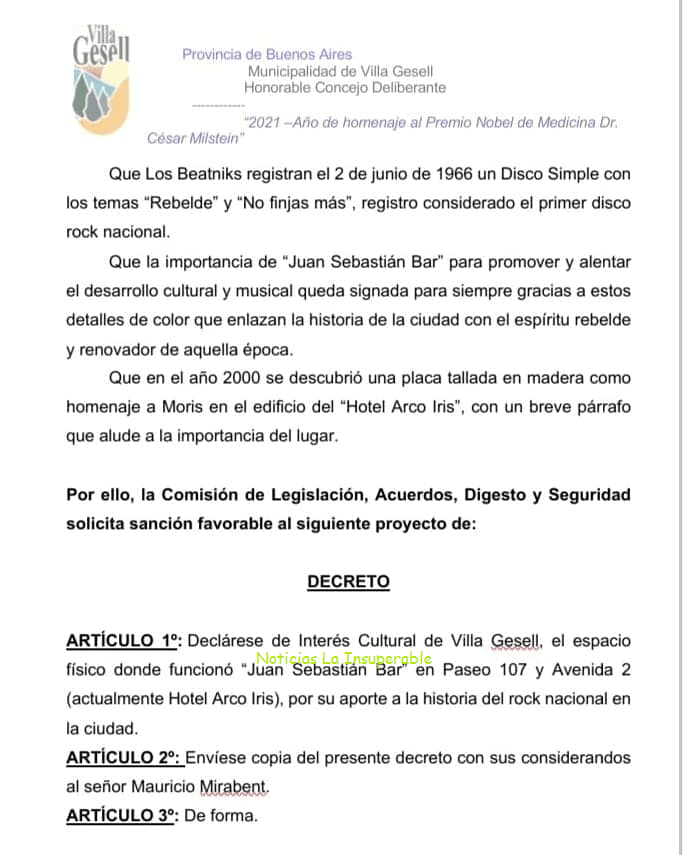Hoy, a una parva de años de aquellos tiempos, la Legislatura de Villa Gesell declara “de Interés Cultural” el espacio físico donde funcionó “Juan Sebastián Bar” donde un grupo de jóvenes cambiaron para siempre lo que los futuros jóvenes del país escucharían.