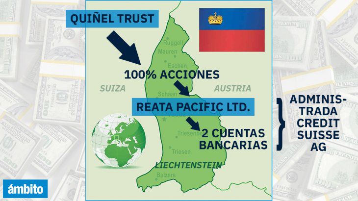 Quiñel Trust es el nombre del fideicomiso que fue creado el 29 de noviembre de 2000, de acuerdo a las leyes del Principado de Liechtenstein, considerado un paraíso fiscal de solo 160 kilómetros cuadrados, ubicado entre Austria y Suiza. Quiñel posee el 100% de las acciones de Reata Pacific Ltd, BVI, que a su vez era titular de dos cuentas bancarias. Los derechos del fiduciante estaban administrados por el Credit Suisse Trust AG, en nombre de Alicia Beatriz Blanco Villegas, con quien figura un contrato firmado. La primera esposa de Franco Macri es la madre de Mauricio, Gianfranco y Mariano (además de Sandra, ya fallecida), y según su estatuto, la principal beneficiaria de los fondos y las rentas del mismo.