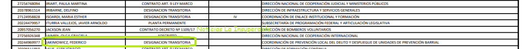 Lo cierto es que Jakimowicz, tal cual expresa el Boletín Oficial del 30 de agosto pasado, tenía solo una “designación transitoria” y prestaba servicios actualmente en el área de “Coordinación de prevención local del delito y despliegue de unidades de prevención barrial”.