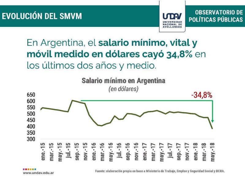 Para ser más concreto, desde la asunción de Macri hasta mediado del 2019, el salario mínimo medido en dólares perdió el 55% de su valor.