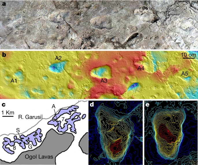 En un trabajo, cuyos resultados fueron publicados ayer en Nature, compararon las huellas en este sitio con las de osos negros estadounidenses, chimpancés y humanos, y mostramos que se parecen más a las de los homínidos que a las de los ursidos. De hecho, el paso estrecho corrobora la interpretación original de un homínido bípedo pequeño y cruzado. Sin embargo, las proporciones inferidas del pie, los parámetros de la marcha y las morfologías tridimensionales de las huellas en el sitio no se asemejan a las otras del yacimiento, lo que indicaría que en Laetoli coexistieron un mínimo de dos taxones de homínidos con diferentes pies y modos de andar.