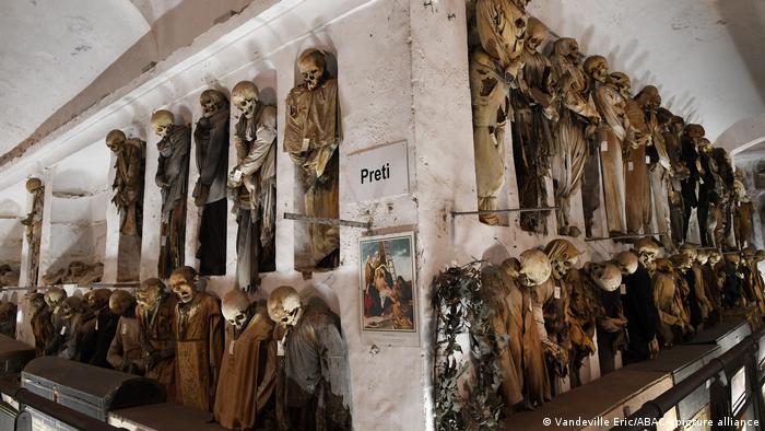 Las Catacumbas de los Capuchinos de Palermo, en el sur de Italia, contienen la mayor colección de momias de Europa, con más de 1.284 cuerpos que datan de finales del siglo XVI a principios del XX. Mientras muchos de los niños que se encuentran allí están ya esqueléticos, otros han quedado momificados.