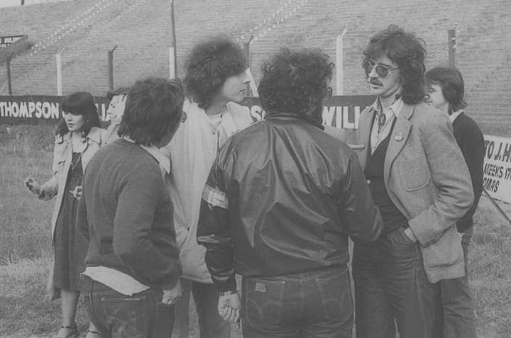 Charly después de tocar con Seru Giran en la cancha de Los Andes (1979)
