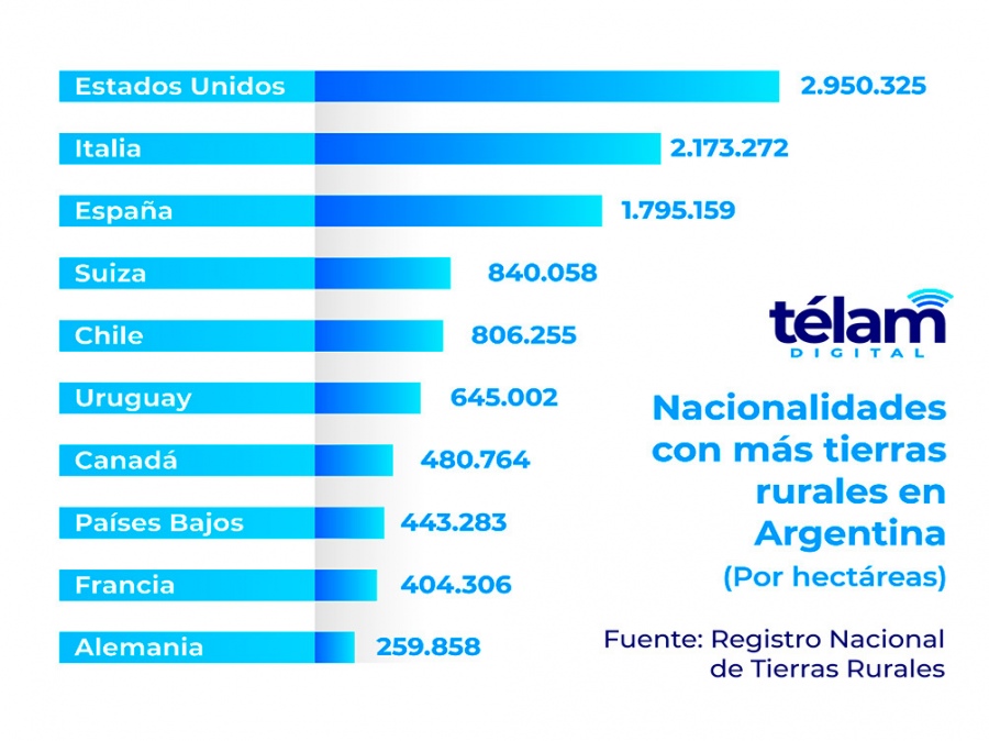 Más de 12,5 millones de hectáreas argentinas están en manos de extranjeros