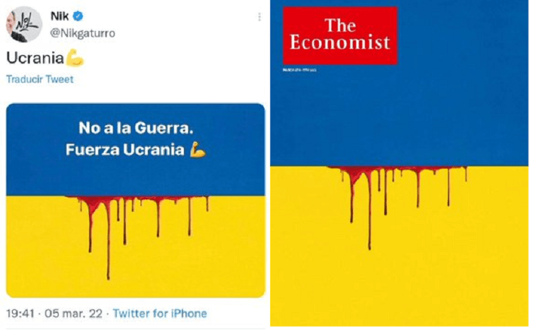 El sábado, el «creador» de Gaturro (un plagio de Garfield se lo mire por donde se lo mire) subió una foto con la bandera de Ucrania ensangrentada y con la leyenda «No a la guerra. Fuerza Ucrania«. Sin embargo, no fue necesario mucho tiempo para que los usuarios de la red social del pajarito se dieran cuenta que se trataba de una copia idéntica a un diseño ya existente.