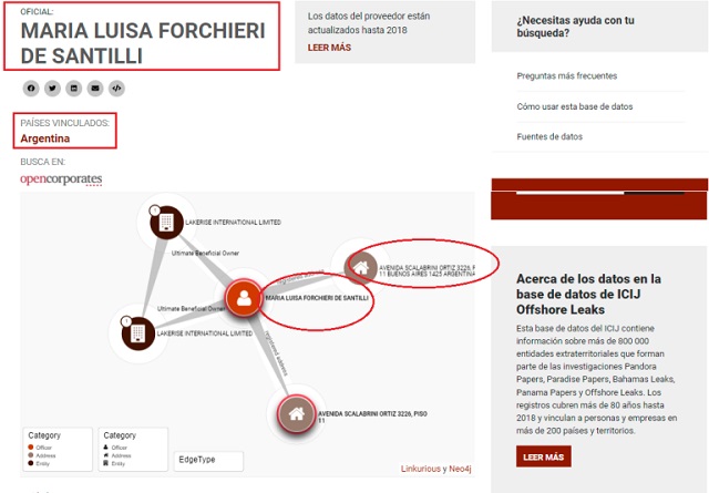 La compañía, actualmente activa, no registrada ante la AFIP, es una sociedad de responsabilidad limitada (SRL) llamada Lakerise Internacional Limitada. Fue creada el 2 de octubre del 2006. Se dedica al servicio de alquileres. Como se dijo su presidenta y única directora, según los papeles del ICIJ, es la jubilada tarotista y lustrabotas María Luisa Forchieri de Santilli, mamá del diputado de Juntos por el cambio. Y tía del actual Secretario de Desarrollo Ciudadano del Gobierno de la Ciudad Autónoma de Buenos Aires (CABA), Agustín Forchieri. Este a su vez, primo hermano, ex asesor y mano derecha de Santilli durante 8 años en la legislatura.