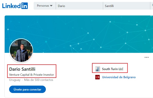 ¿Pero quién es y a que se dedica Darío Cesar Santilli, el hermano del “Colo” e hijo de la tarotista chick María Luisa Forchire? Según el perfil de la red social Linkedin, el CEO de la offshore South Tourin LLC y dirigente de River Plate es Licenciado en Sistemas en la Universidad de Belgrano, y está radicado en Uruguay, otro paraíso fiscal, la “Suiza de Sudamérica”. Se presenta como “inversor privado” de “capitales de riesgo” y declara, en su presentación, ser el CEO principal de la offshore South Tourin LLC.