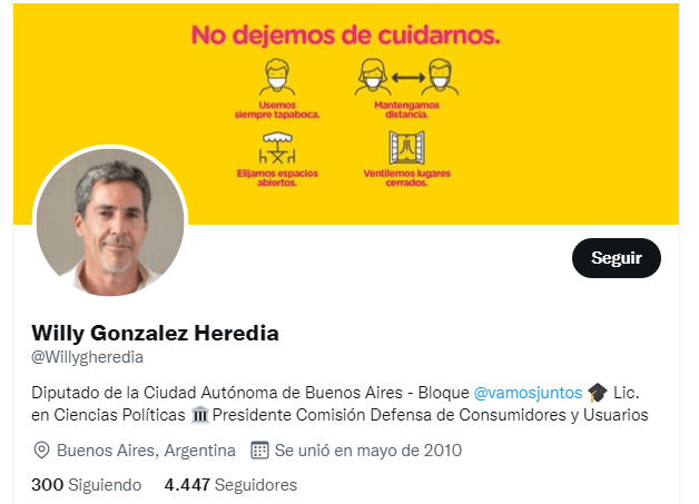 Volviendo a su ingeso a la plantilla porteña, tan sorpresivo parece haber sido este nombramiento «retroactivo» por parte de Jorge Macri que ni siquiera el mismo González Heredia tuvo tiempo de actualizar su «bío» en las redes sociales, donde sigue figurando con su «anterior puesto» de Diputado.