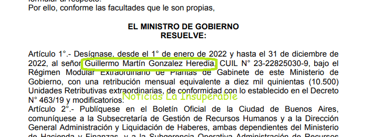 Se confirmó hoy, a través del Boletín Oficial porteño, la contratación del ex Legislador de Vamos Juntos, Guillermo González Heredia, por parte del Ministro de Gobierno de la Ciudad de Buenos Aires Jorge Macri, sumándose así a la larga lista de mantenidos por los bolsillos porteños.
