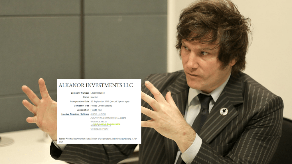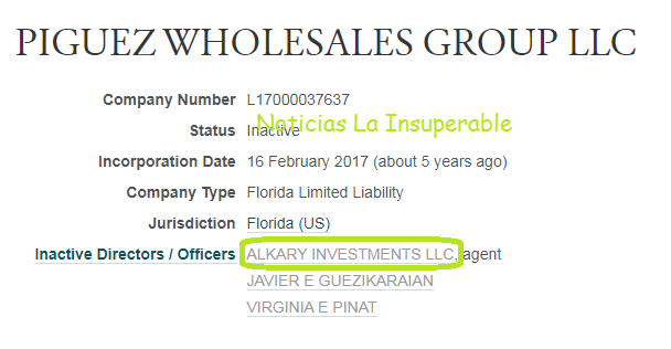 Y es porque, a través de ALKARY INVESTMENS LLC, como «mamushkas», los Milei poseen otras offshores, como ALKANOR INVESTMENTS LLC y PIGUEZ WHOLESALES GROUP LLC.