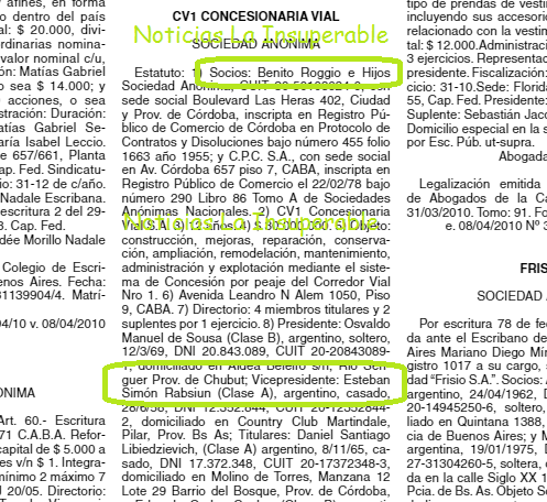O cuando en 2010 Benito Roggio e Hijos crean a CV1 Concesionaria Vial S.A., aquella que tiene la concesión de la Ruta Nacional 226, Rabsiún será designado vicepresidente de la firma. Y así figurará también en innumerables empresas de los Roggio.