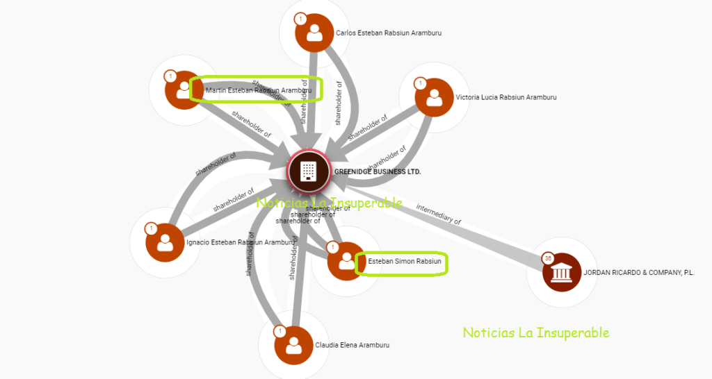 De paso sea dicho, para estar a tono con el espíritu cambiemita, los Rabsiun, el padre de Roggio, el hijo funcionario de Larreta y toda la cría, tienen su propia offshore: GREENIDGE BUSINESS LTD., radicada en las Islas Vírgenes Británicas, creada en 2012 y aún activa.