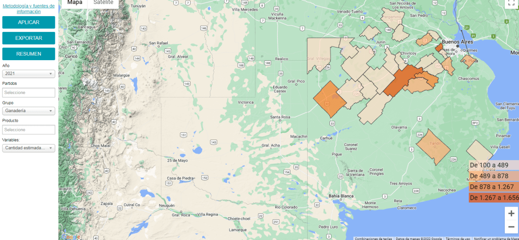 La responsable técnica del proyecto, investigadora del CONICET, Mariela Blanco comenta que la información que se encuentra en el mapa se puede visualizar desde dos dimensiones, a nivel de partidos y a nivel de los productos que se relevaron, los cuales comprenden 105 partidos de la provincia de Buenos Aires. “Todos estos datos se pueden exportar en un archivo Excel que nos va a generar el mapa, con toda la información, de manera tal que permite hacer un análisis más preciso de tipo estadístico a partir de éstos resultados que ofrece” afirma la investigadora.