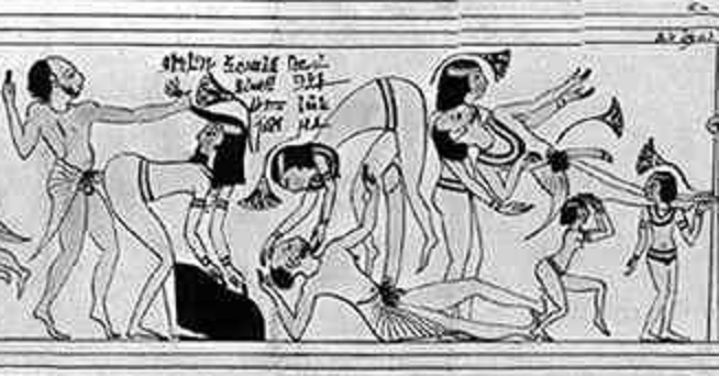 El papiro insinúa esto al representar al amante exhausto siendo llevado, con su miembro inerte decorado con una flor de loto perteneciente a la chica que sostiene sus nalgas, o al sugerir que el acto puede terminar antes de que la mujer sentada en su taburete haya tenido tiempo de disfrutar y suplica al hombre: Contenga su placer; tu pene esta dentro de mi…