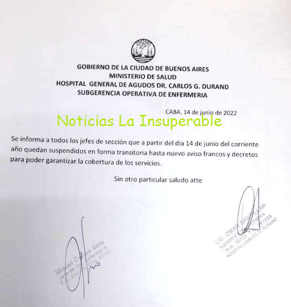 Desde el Hospital Durand denunciaron una nueva “ola de despidos”, que completa las bajas por goteo que se venían dando desde hace meses en todos los hospitales porteños. Esta vez, la notificación del cese de contratos afecta a 65 trabajadores y trabajadoras de enfermería e incluye a “embarazadas, personas con secuelas de Covid y mujeres sostén de familia”, según la alertó la agrupación Hospitales de la Ciudad nucleados en ATE.