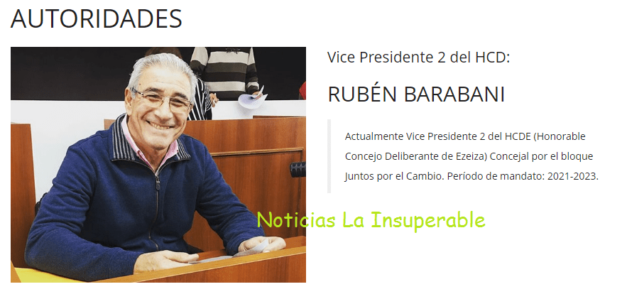 En una notoria irregularidad por la que nadie está dando explicaciones convincentes, un histórico hombre de Cambiemos, Rubén Barabani, concejal en ejercicio, actual presidente del bloque de Juntos por el Cambio en el Honorable Concejo Deliberante de Ezeiza y actual vicepresidente segundo, fue nombrado hace unos meses como Director en el ministerio de Justicia y Seguridad de la Ciudad de Buenos Aires.