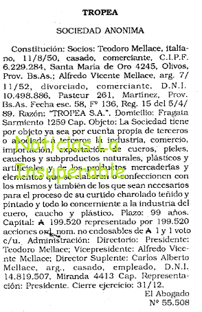 Tropea, mucho más conocida por su gran cantidad de locales de atención directa al público, fue constituída en abril de 1989 por la familia de origen italiano Mellace.