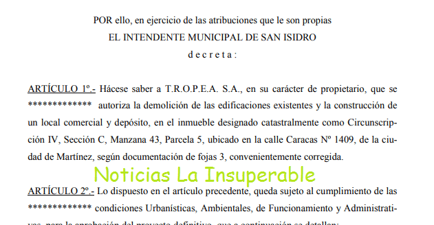 Y el mismo Gustavo Posse es el que, a través del Decreto 1995/2010, autorizó una demolición en Caracas 1409, Martínez, para que TROPEA pudiera construirse un local comercial y un depósito.