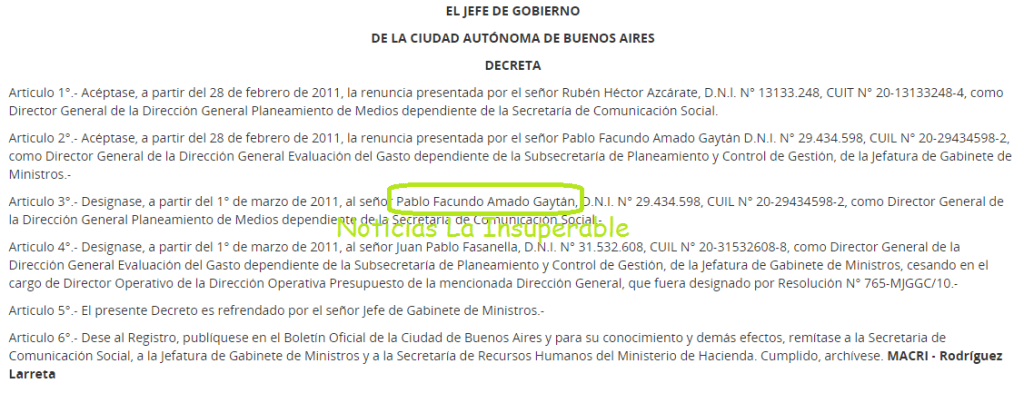 Antes aún, en 2011, el propio Rodríguez Larreta puso el gancho cuando Gaytán fue nombrado Director General de la Dirección General Planeamiento de Medios dependiente de la Secretaría de Comunicación Social.