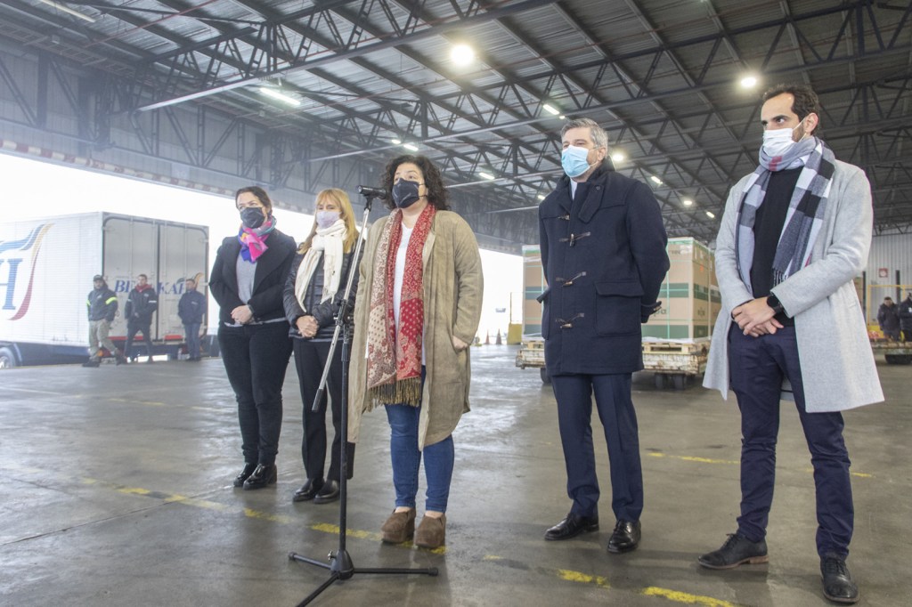 La ministra de Salud de la Nación, Carla Vizzotti, recibió hoy en el Aeropuerto Internacional de Ezeiza el primer cargamento con 2.744.400 dosis de vacuna contra la COVID-19 del laboratorio Moderna que serán aplicadas en población pediátrica de 6 meses a 5 años, tanto para iniciar y completar esquemas en niñas y niños de 6 meses a los 2 años 11 meses y 29 días, como para el inicio o la aplicación de refuerzos en la población de 3 y 4 años.