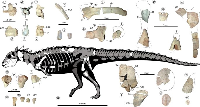 “La armadura del cuello de este dinosaurio es particular y protegía esa zona delicada de los ataques de depredadores. Los huesos que se conservan de los brazos nos muestran que estos eran diminutos, algo que en el resto de los tireóforos, cuadrúpedos en su gran mayoría, no ocurre”, enfatiza Apesteguía.
