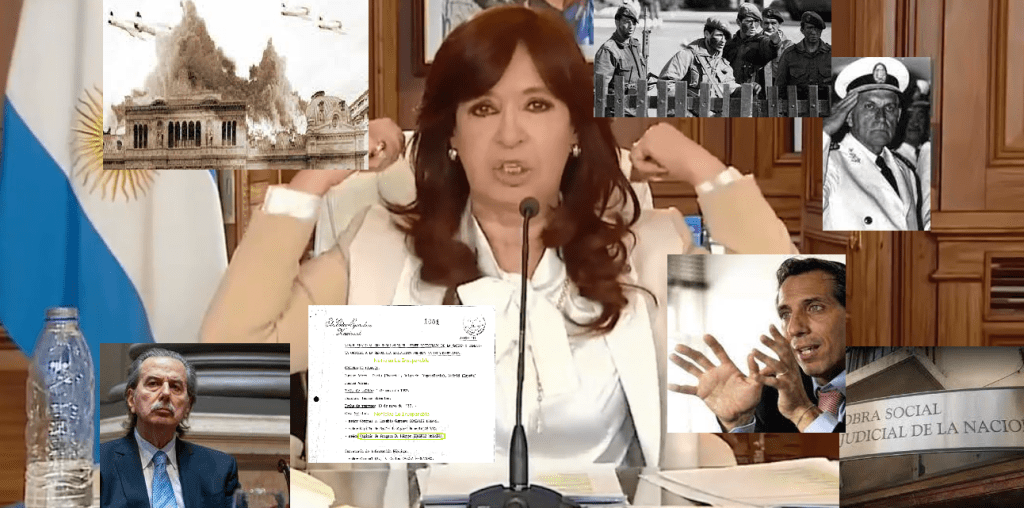 Y este juez, tan «parcial» para juzgar a un militar de la Dictadura, va a cumplir su mandato y será también «tan parcial» para juzgar a Cristina. Y ella lo sabe y lo dijo claramente en su elocución del otro día: “El lawfare tiene un escalón superior, una farsa. No hay partidos militares pero sí hay partido judicial”, manifestó la vicepresidenta, que rememoró que el padre del juez Giménez Uriburu fue “oficial de la marina” y “director de Protocolo de Bignone”. En esa línea dijo: “Me van a decir que quien es el hijo de quien fue director de protocolo de Bignone me va a absolver, deben estar con cuchillo y tenedor”.