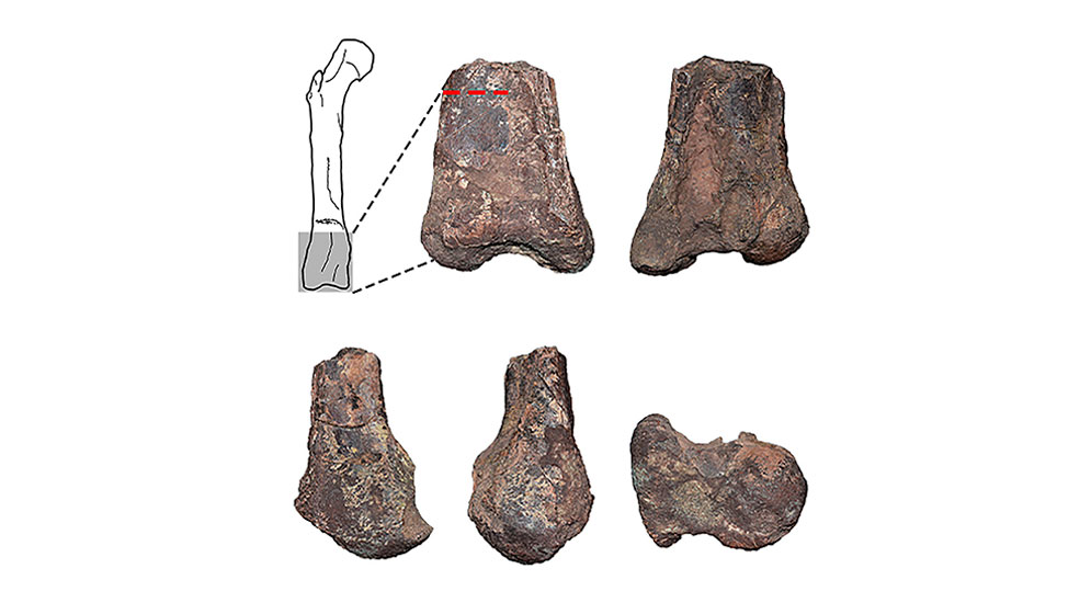 Restos fosilizados del fémur de Elemgasem nubilus. Créditos: Gentileza de Mattia A. Baiano.