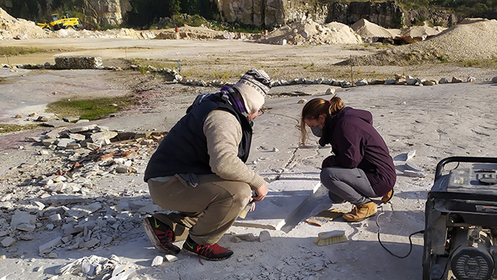 Un equipo de especialistas en paleontología y geología del CONICET halló más de 120 trazas fósiles en una cantera de roca cuarcita, más conocida como piedra Mar del Plata. Las marcas se encontraron en una superficie de cinco mil metros cuadrados y pertenecerían a peces, denominados Raederichnus dondasi, que habitaron los mares someros de la zona hace más de 430 millones de años.