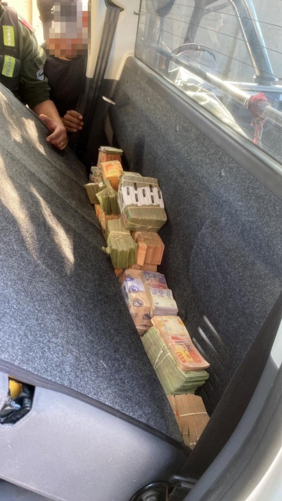 En tanto, al continuar con la requisa, los uniformados constataron la presencia de 24.344.000 pesos, ocultos detrás de los asientos traseros y sin aval que justifique su legal tenencia.