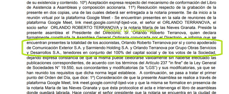 El Grupo Obras Servicios y Desarrollo pertenece nada menos que a la familia Terranova, dueños de Publicidad Sarmiento (empresa que acaba de cerrar un millonario contrato con Horacio Rodríguez Larreta) y del portal MDZ Online, entre otros.