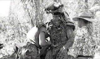 El principal problema era que las piernas de triple articulación le impedían caminar, y tenía que estar suspendido de un arnés con las piernas de marioneta colgando debajo de él. Eso ya era bastante complicado, pero si se tiene en cuenta que se estaba rodando en la selva mexicana y se necesitaba una criatura móvil para las escenas de acción, simplemente no funcionaba. El propio Arnold Schwarzenegger cuenta del traje: «Parecía un tipo con un traje de lagarto con cabeza de pato«. El diseño del traje era tan terrible que la producción se detuvo para que Stan Winston, que venía de hacer Terminator, pudiera incorporarse y rediseñarlo por completo.