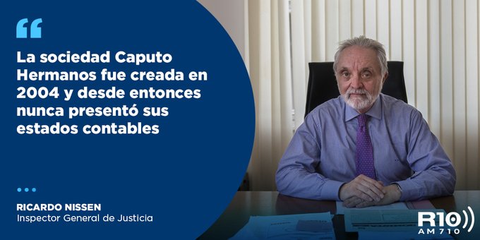 Ricardo Nissen, director de la Inspección General de Justicia (IGJ), calificó a «Caputo Hermanos SA«, la empresa sindicada como sostén económico de Revolución Federal, como «una ficción de sociedad» y advirtió que, frente a la «poquísima documentación presentada«, parece existir «un propósito de sus fundadores de no permitir que se entere la IGJ ni los terceros de las actividades que llevaban adelante«.
