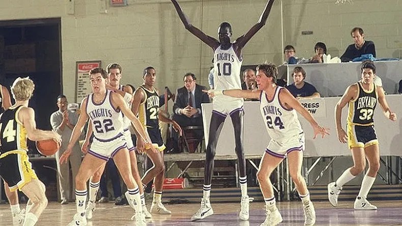 La compañía de Nihal, que sabía inglés y estaba más preparado que Manute, fue clave para pasar semanas de desolación, en las que incluso meditó volver a Sudán. Alojado en un hotel de Cleveland, con el dinero justo, esperó hasta que la NCAA determinó que Cleveland State no podía incorporarlo por haberle pagado el pasaje y darle dinero, todas acciones penadas por el reglamento universitario. Manute no se cayó y, sin poder jugar, dedicó los próximos meses a mejorar su inglés y a progresar en su juego. Feeley, entonces, reapareció en escena como asistente de la Universidad de Bridgeport, una facultad pequeña de segunda división localizada en Connecticut que logró que la NCAA aceptara una beca especial para Bol. ¡Así, al fin, Manute pudo jugar!