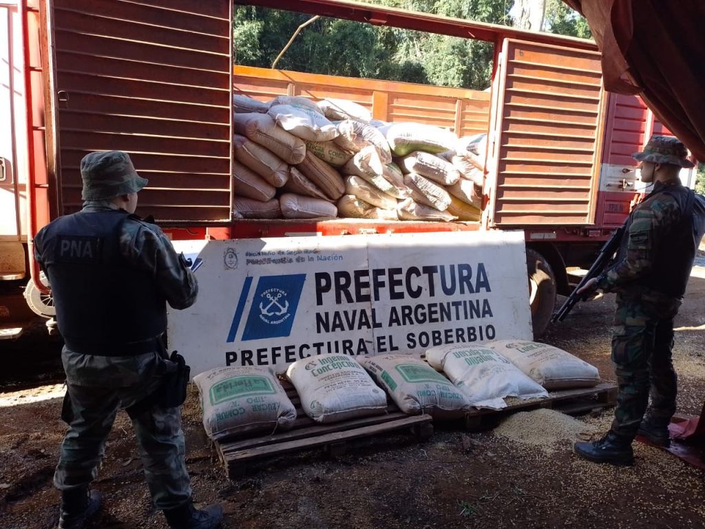 Por un lado, en El Soberbio, la Autoridad Marítima incautó en los kilómetros 1145 y 1150 del río antes mencionado, más de nueve toneladas de soja y expeller de soja, que estaban siendo cargadas desde dos vehículos hacia embarcaciones embicadas en la costa.