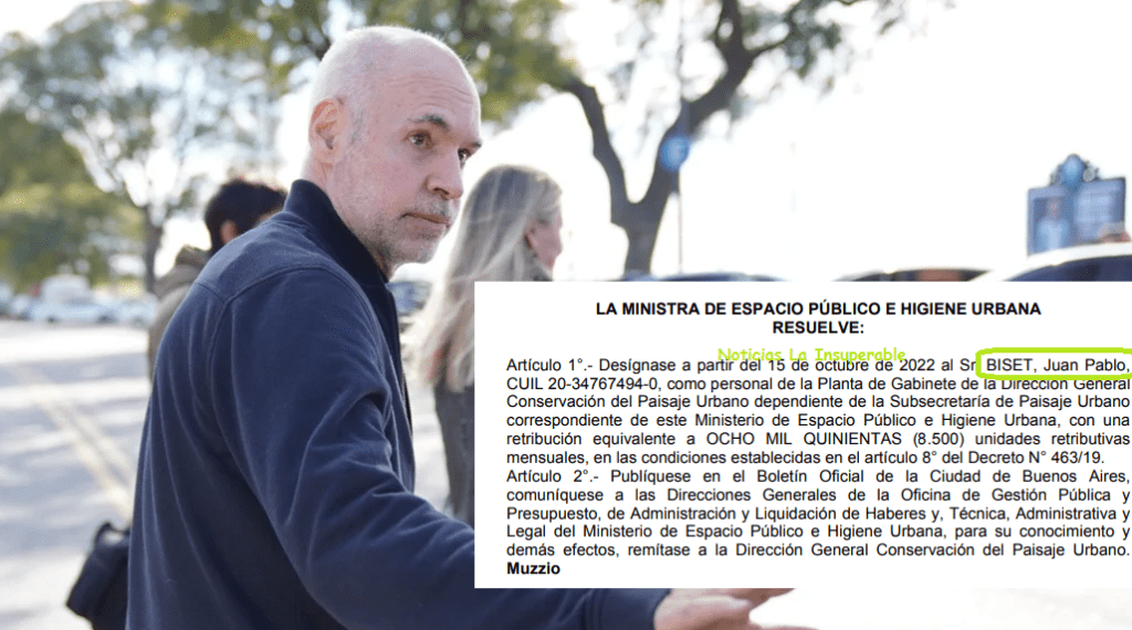 Camila Crescimbeni tiene 32 años y desde el 2019 se desempeña como diputada nacional por la provincia de Buenos Aires. Comenzó a militar en el PRO en 2015 y desde entonces hizo una carrera meteórica. Quien también «avanzó» junto a ella fue su marido, Juan Pablo Biset, quien a través de la RESOLUCIÓN N.º 1041/MEPHUGC/22 firmada por la ministra Clara Muzzio y publicada hoy en el Boletín Oficial porteño, acaba de confirmar su designación como personal de la Planta de Gabinete de la Dirección General Conservación del Paisaje Urbano dependiente de la Subsecretaría de Paisaje Urbano correspondiente de este Ministerio de Espacio Público e Higiene Urbana. Y con un sueldo que supera los 300.000 pesos.