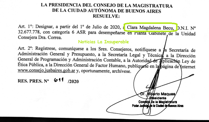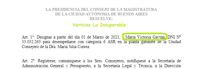 Al igual que Gaytan, ingresó al Consejo de la Magistrtura por el lado de la Consejera representante del estamento de los jueces María Julia Correa, también «con categoría 6 ASR«.