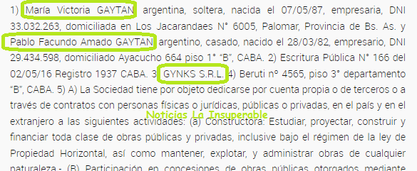 María Victoria Gaytán es, a su vez, socia de su «influencer» hermano Pablo en una empresa constructora llamada GYNKS S.R.L., empresa a la que el propio socio felicita en sus redes por sus obras como si fueran de un tercero.