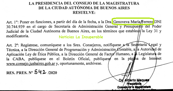 Desde que Genoveva Ferrero está en el Consejo de la Magistrtura de la Ciudad de Buenos Aires ha estado bastante ocupada. Por un lado, tomándose licencias con goce de sueldo (como hemos visto más arriba que demostró el periodista Juan Alonso); por el otro, expandiendo las redes de poder.