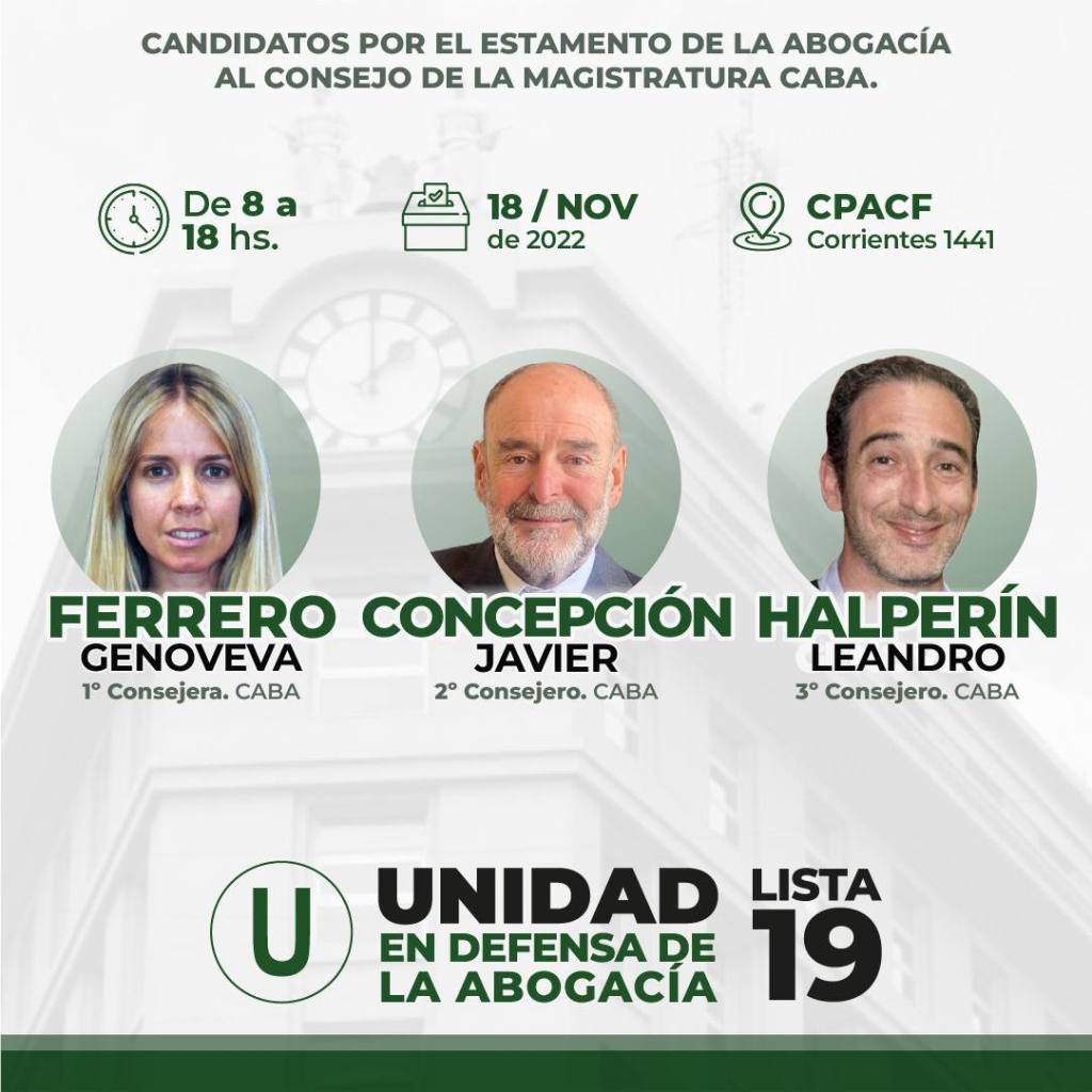 Previo a eso, hace un par de semanas, a fines de noviembre, encabezó la «Lista 19» que se impuso en las elecciones en las que los abogados matriculados en la Capital Federal eligieron a sus representantes ante el Consejo de la Magistratura de la Ciudad, donde la acompañaron el radical Javier Concepción y el exlegislador de la UCR Evolución, Leandro Halperin.