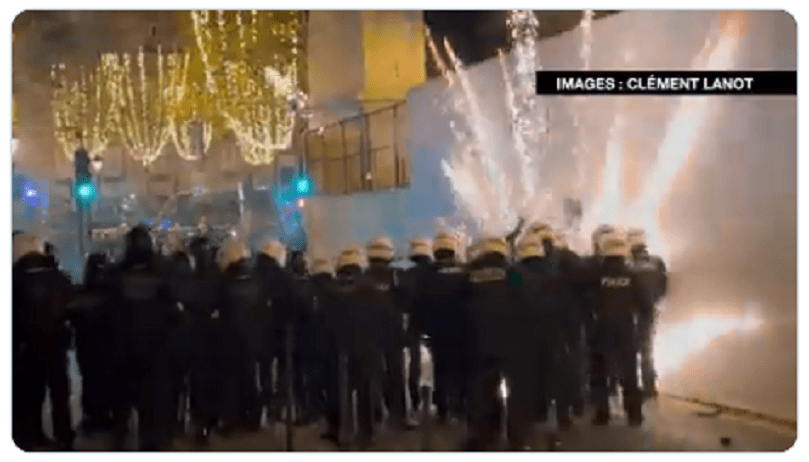 Miles de aficionados se reunieron en los Campos Elíseos y el Arco del Triunfo después de la final de la Copa Mundial de la FIFA Catar 2022. Horas después del partido, varios grupos de personas estuvieron involucrados en algunos disturbios en las calles, como quemas y lanzamientos de cohetes, por lo cual las fuerzas policiales de París intervinieron para contener el caos.