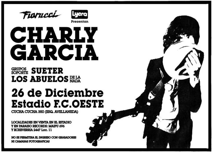 A bordo de una limusina rosa junto a los músicos de su banda, luego de ser anunciado por un presentador francés y con la melodía de una reconocida chanson de fondo, Charly García ingresaba al escenario montado en la cancha de Ferro la calurosa noche del domingo 26 de diciembre de 1982, para protagonizar un memorable show que daba inicio formal a su etapa solista, el cual quedó grabado a fuego en la memoria colectiva por su impactante final en el que un bombardeo de pirotecnia destruyó la ciudad armada como escenografía, como corolario de la elíptica interpretación de No bombardeen Buenos Aires.