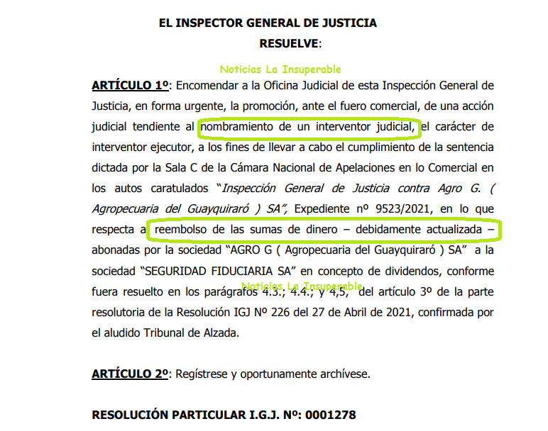 Ahora, desde la IGJ, a través de la Resolución Particular 1278/2022 a la que accedió Noticias La Insuperable, promocionan ante el fuero comercial, «una acción judicial tendiente al nombramiento de un interventor judicial, el carácter de interventor ejecutor, a los fines de llevar a cabo el cumplimiento de la sentencia dictada por la Sala C» y que Mauricio Macri proceda al reembolso de los 54 millones más los intereses pertinentes.