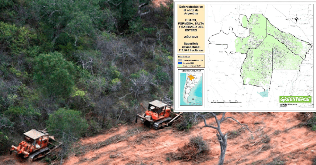 Un informe de Greenpeace revela que durante 2022 la deforestación en el norte argenitno fue de más de 112.000 hectáreas, destacándose la ilegalidad de todos los desmontes que se realizaron en Chaco, suspendidos por la justicia provincial, y del 80% de los ejecutados en Santiago del Estero.
