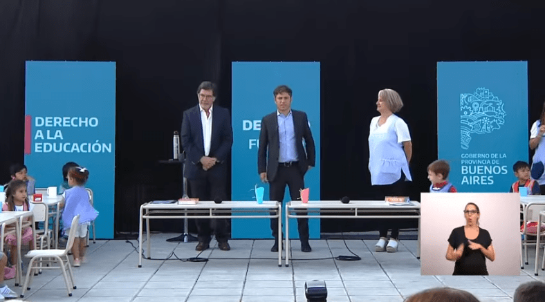 “Muchos decían en los diarios y la tele que en la provincia de Buenos Aires no hay conflicto educativo porque hay relaciones personales entre quienes gobernamos y quienes representan a los docentes. Yo quiero decir que este año, al primer que los demás, las clases empiezan en tiempo y forma porque nosotros vinimos a recuperar el salario. Si querés que empiecen las clases, probá con subir salarios, con abrir escuelas”, desafió Kicillof.