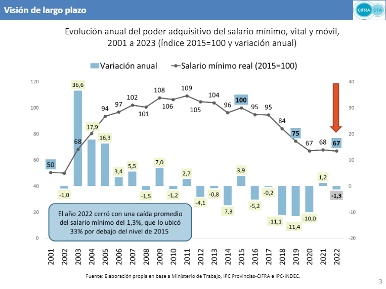 Un estudio del Centro de Investigación y Formación de la República Argentina (CIFRA), elaborado por las investigadoras Mariana L. González y Cecilia Garriga, analiza la evolución del salario mínimo, vital y móvil durante las dos últimas décadas.