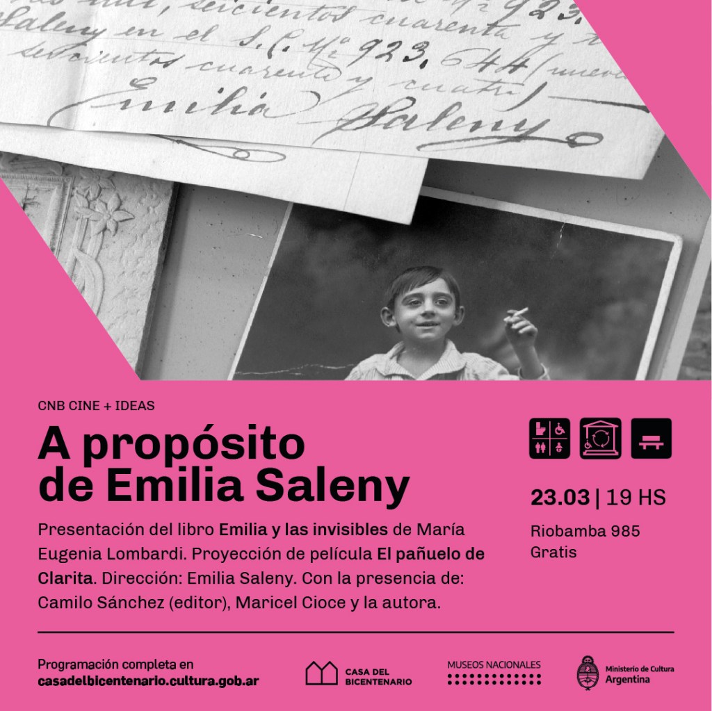 En el marco de las actividades programadas en el Mes de la Mujer Trabajadora, la Casa Nacional del Bicentenario te invita a la presentación del libro Emilia y las invisibles, de María Eugenia Lombardi. La mesa contará con la presencia de Camilo Sánchez (editor), Maricel Cioce y de la autora. Tras la presentación, se realizará la proyección de la película El pañuelo de Clarita, dirigida por Emilia Saleny, protagonista del libro de Lombardi.