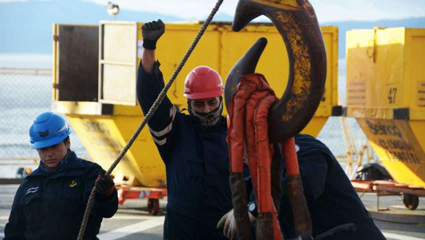 El transporte de la Armada arribó a Ushuaia e inició el traspaso de la carga para abastecer las bases antárticas durante el desarrollo de la última etapa de la campaña estival.