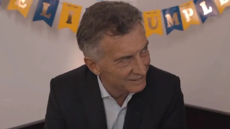 En las imágenes se muestra una torta de cumpleaños con el escudo de Boca y otras decoraciones en azul y amarillo. Al abrirse el plano, se puede ver que quien se prepara para soplar la vela es Macri, expresidente del club. «Pedí un deseo», indica una voz en off. A su lado, Andrés Ibarra lo mira y luego sonríe a cámara.