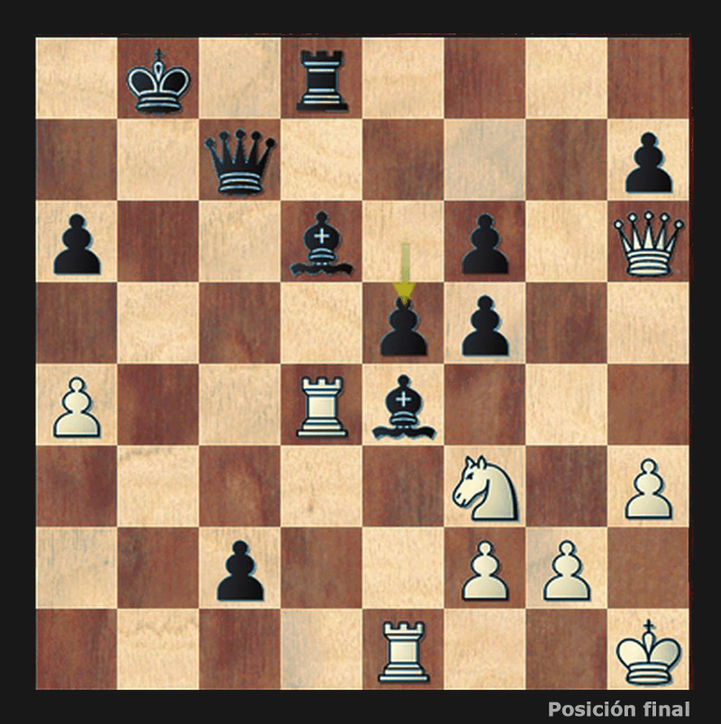 Este segundo encuentro se definió en veintinueve jugadas: la imposibilidad para encontrar una retirada para su torre y la amenaza de coronación de un peón rival dejaron al blanco sin defensa ni esperanza alguna.